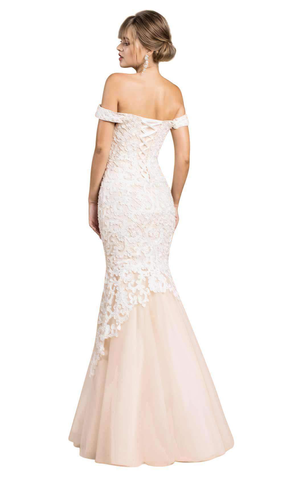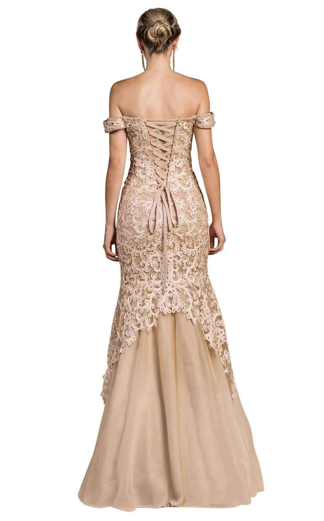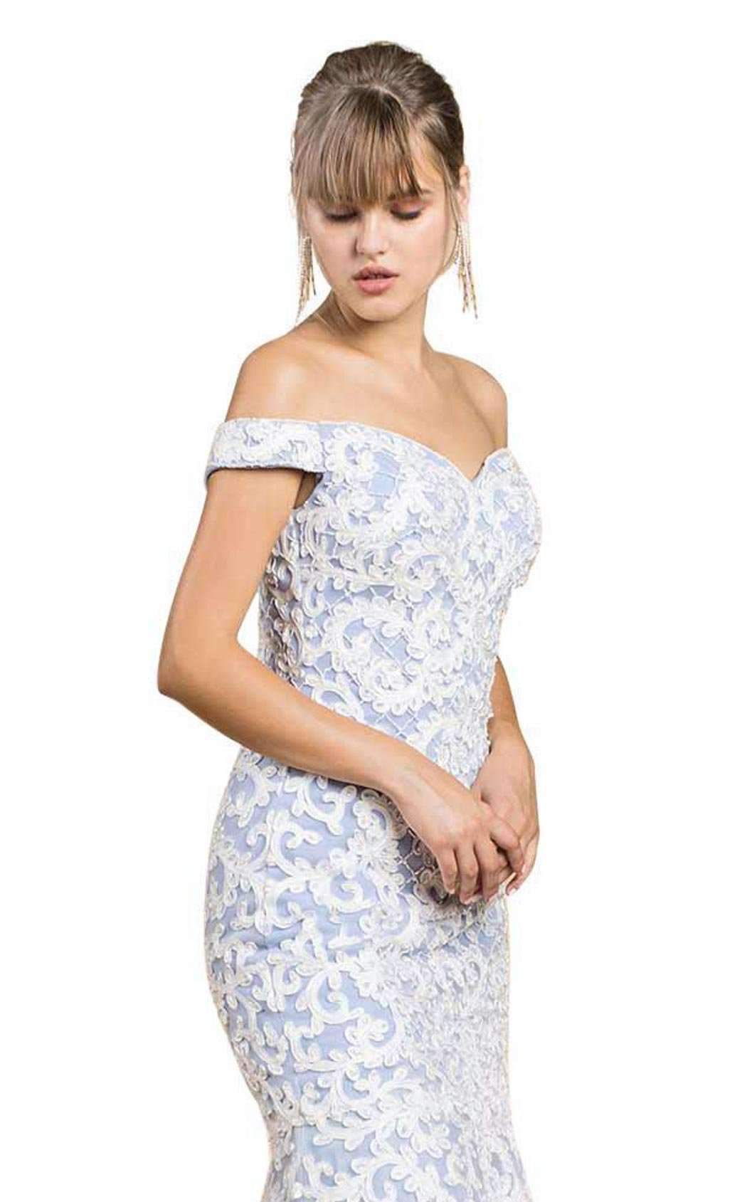 Ornamental off-the-shoulder gown with flounce by Andrea & Leo