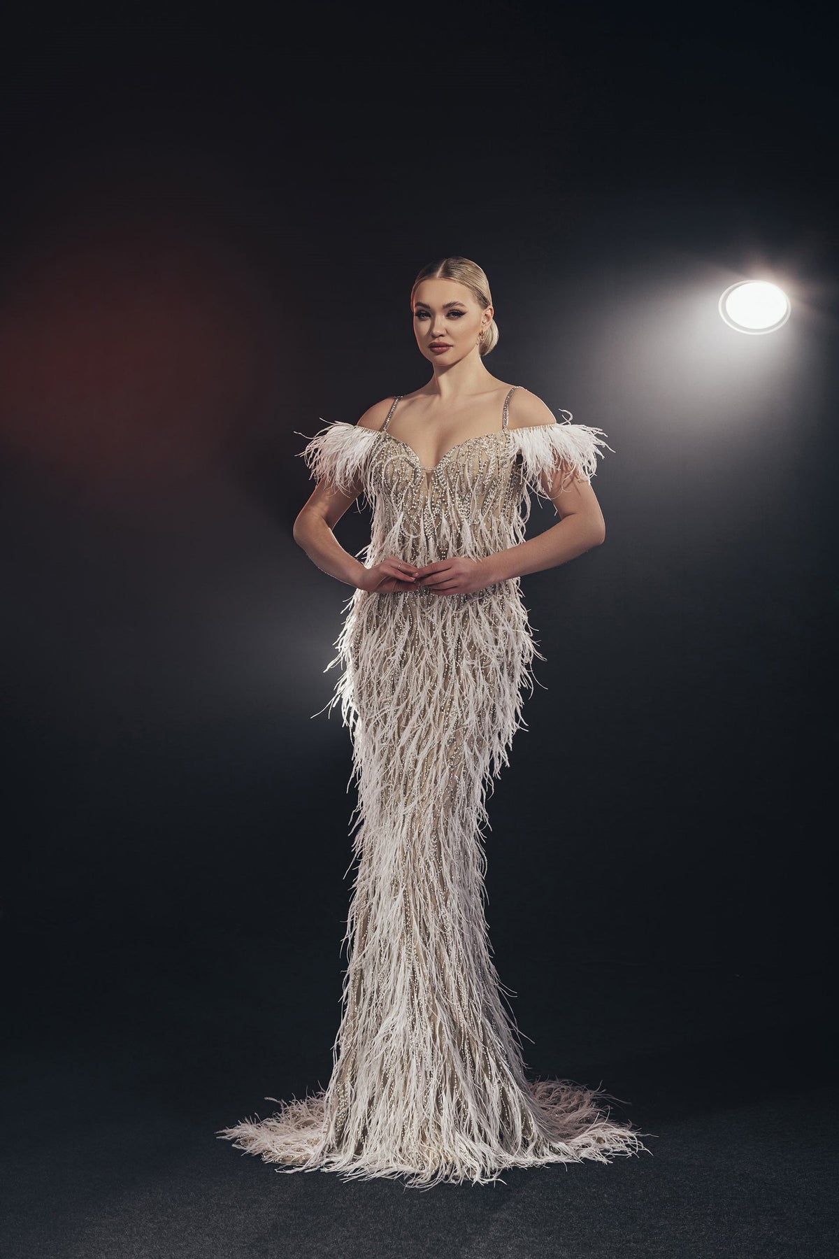 Chic and Holland HF110085 Fall 2023 Couture evening collection gown.