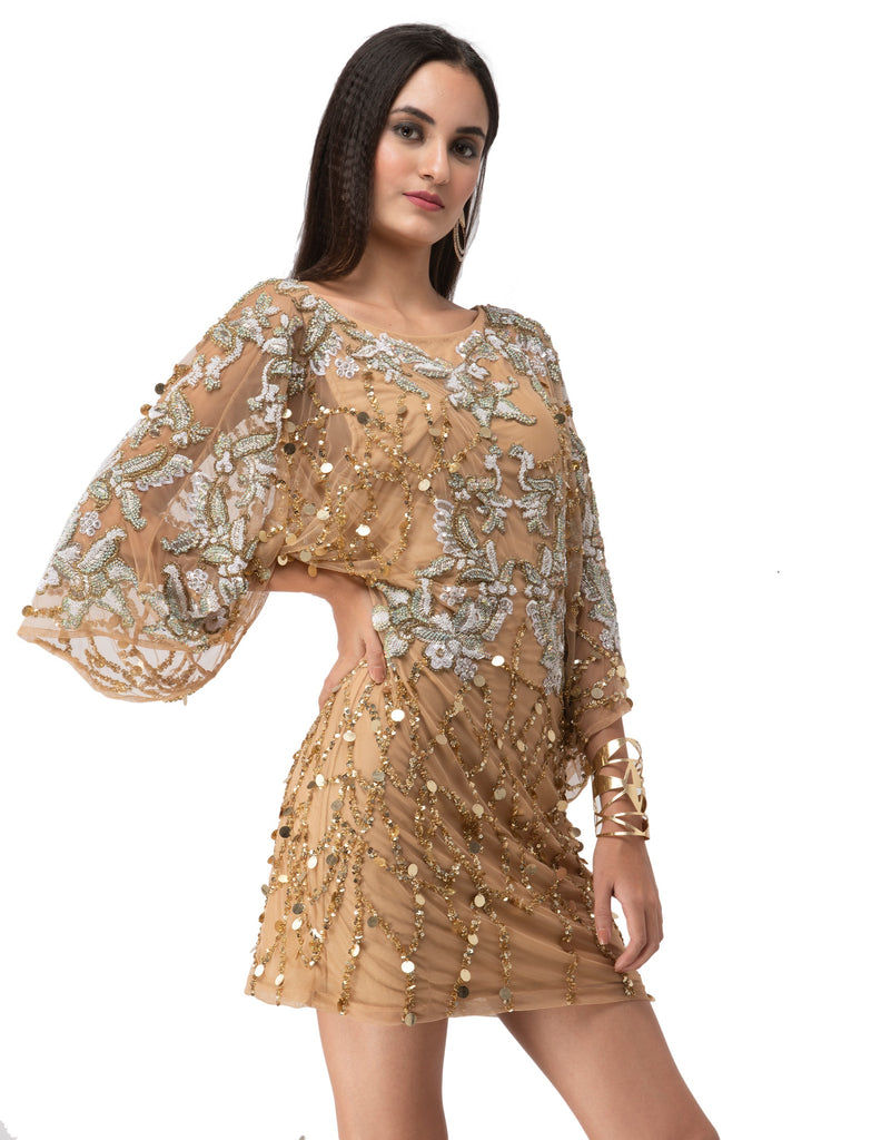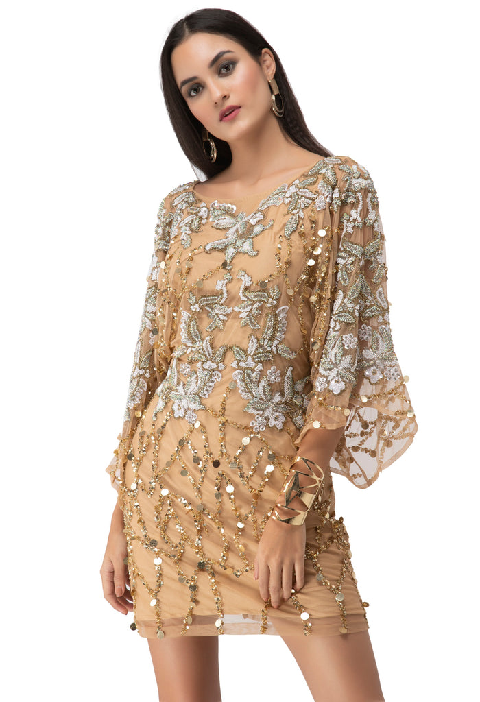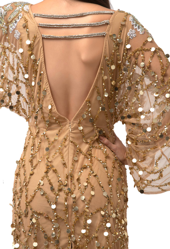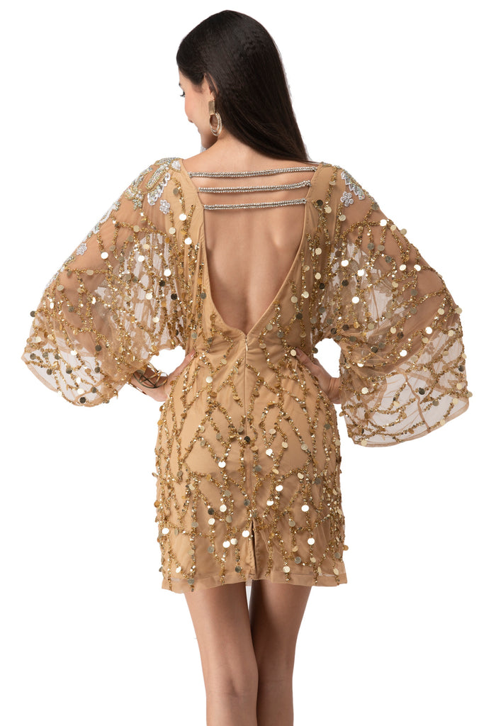 THE STYLE #19200124 IS SHORT DRESS, LOW BACK, BEAUTIFUL COUTURE EMBELLISHMENT, EMBELLISHMENT DETAILS THROUGHOUT.