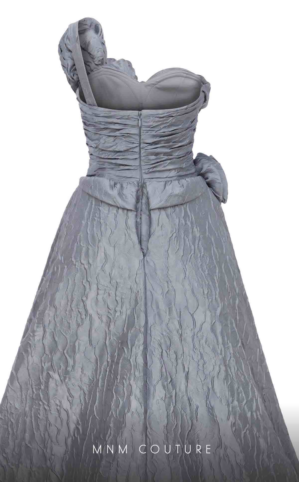 Indulge in luxury with the MNM Couture F02877, a stunning brocade gown that exudes glamour and sophistication. This exquisite design features an asymmetrical neckline and a delicate rosette detail that elevate its elegance, complemented by puff long sleeves and a tulip skirt that flows into a graceful sweep train. Perfect for making a bold statement, the MNM Couture F02877 is your go-to choice for unforgettable occasions. Experience the allure of this remarkable gown and enhance your wardrobe with this exceptional piece