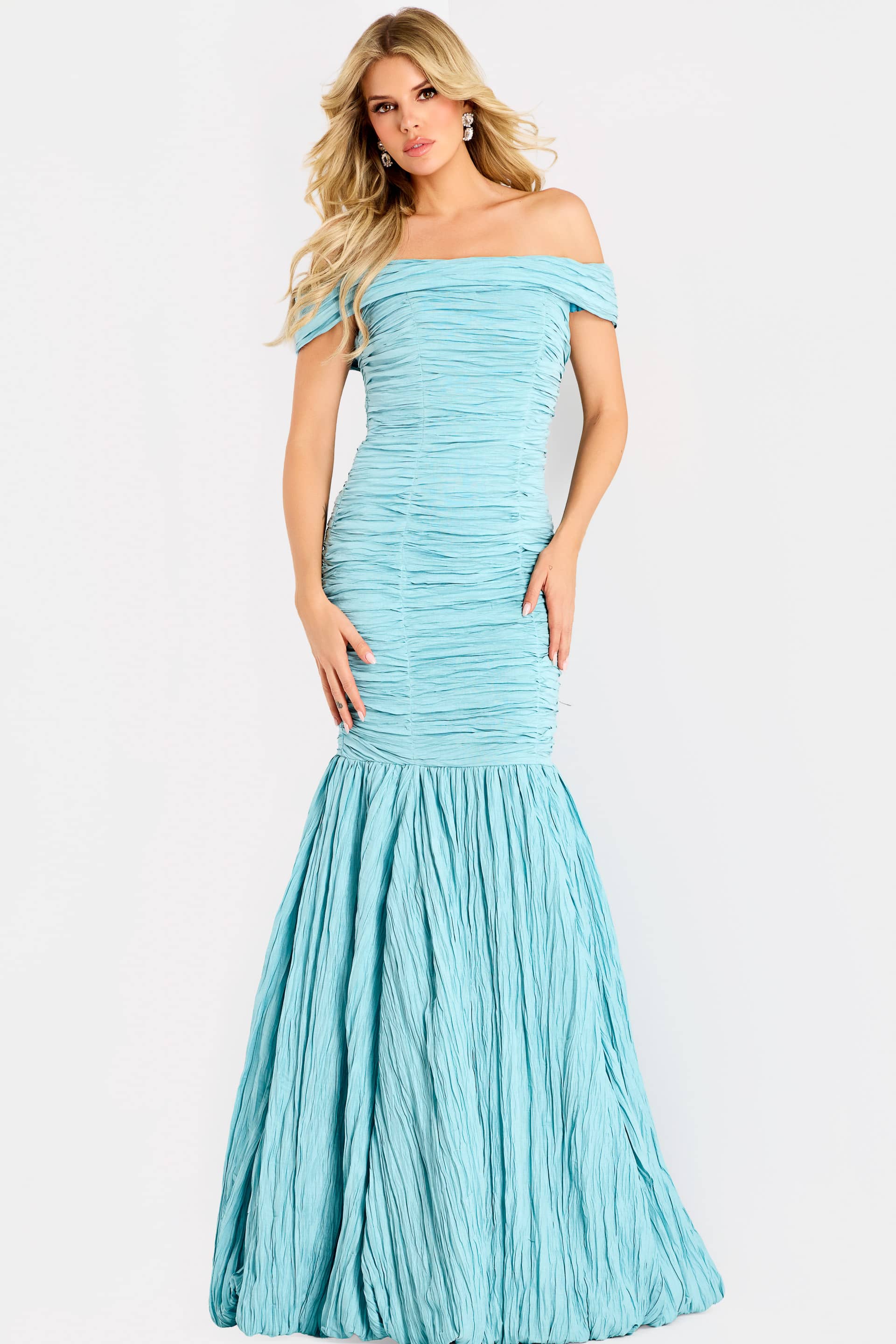 Fully Ruched Bodice, Textured Fabric, Flared Hem |
