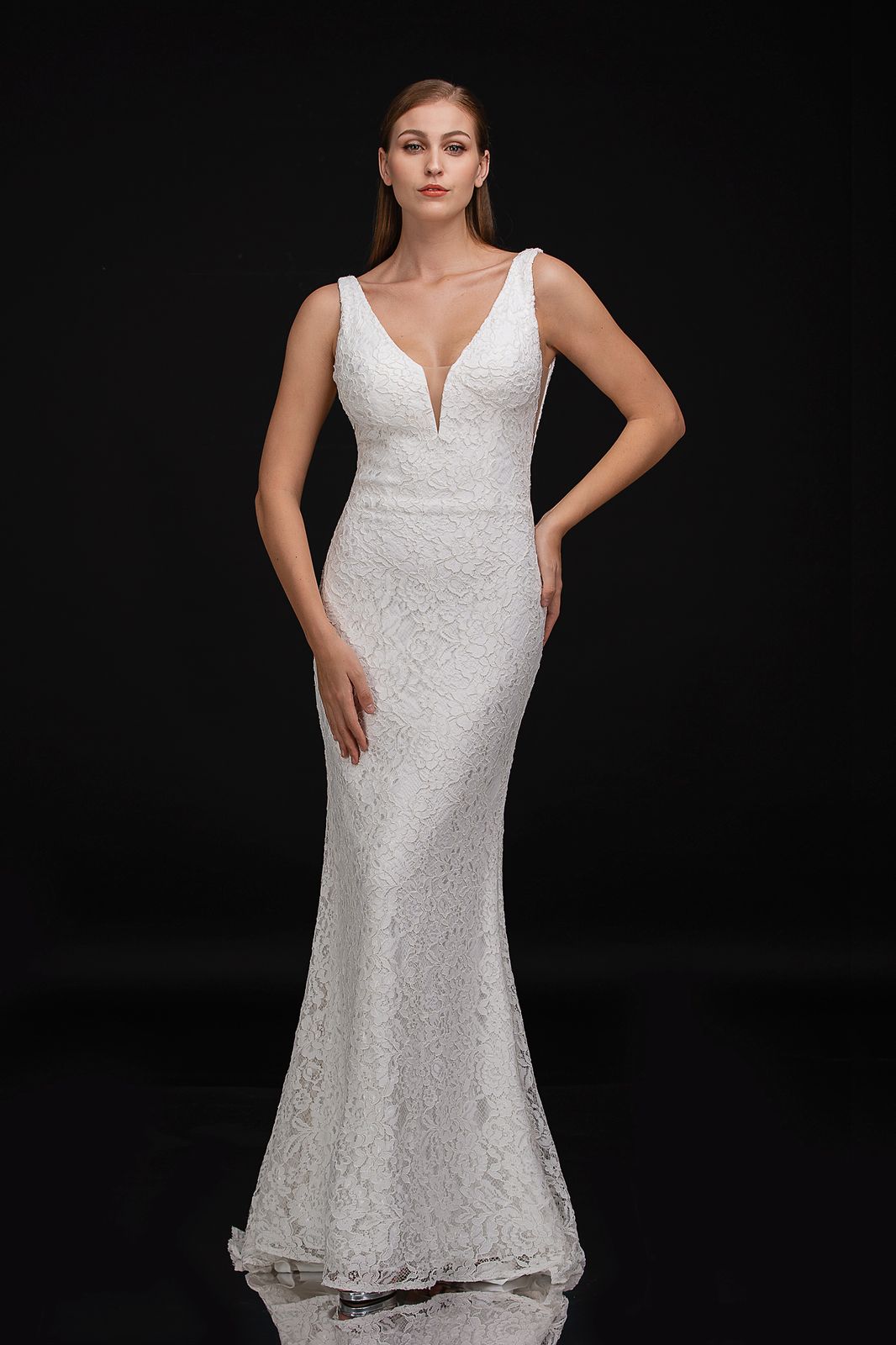 Long Fitted All Over Lace Dress With Mesh Open-Side