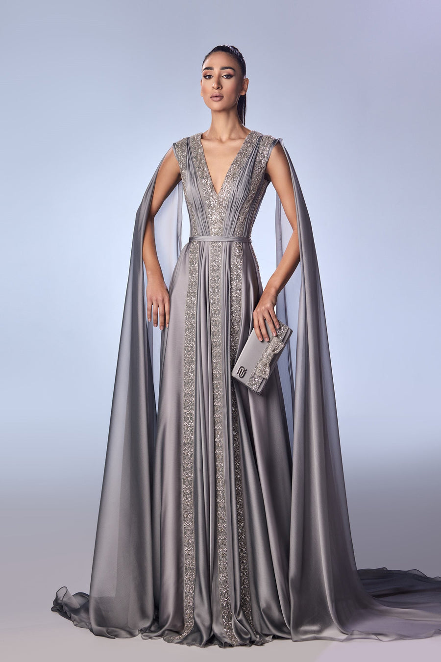 Elevate your evening with this stunning Reverie Couture FW46 Beaded Mouseline Gown. Handcrafted with intricate beadwork on a delicate mouseline fabric, this gown exudes elegance and sophistication. The floor-length skirt flows effortlessly for a graceful look, while the matching clutch completes the ensemble. Perfect for formal events, this gown is sure to turn heads.