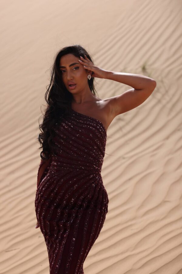 Asymmetrical Neckline One Side Shoulder Shimmery Dress