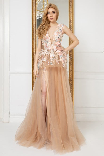 - Handmade embroidery with 3D flowers - France