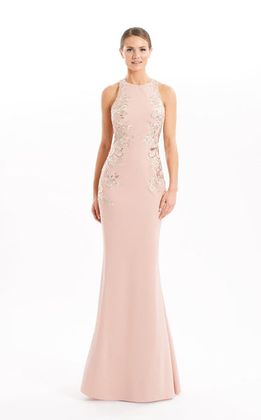 If you're looking for a dress that is going to wow everyone at your next event, this is the dress by Daymor for you. This dress features a high round neckline with a sleeveless design. The fitted bodice is adorned with sequin embroidery and it has a fitted skirt. The sequin embroidery and the sheen of the fabric will make you feel like you're a royalty.