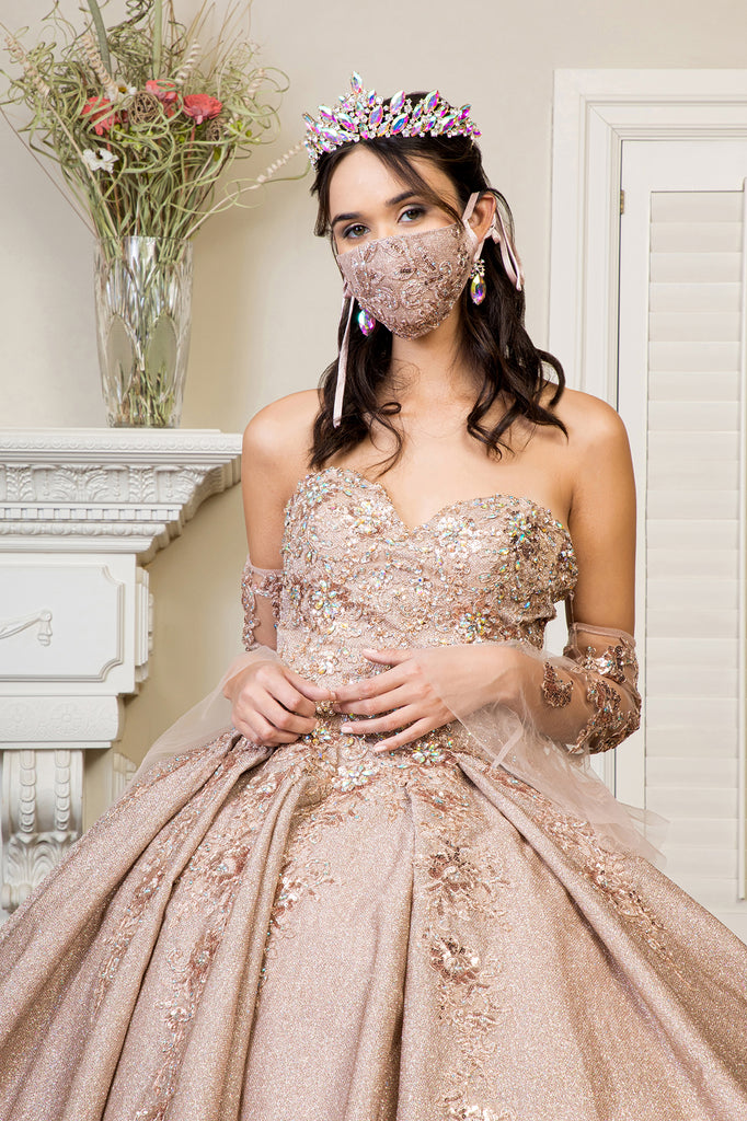 Sweethearted Ruffle Tail Quinceanera Dress w/ Detached Mesh Sleeve
