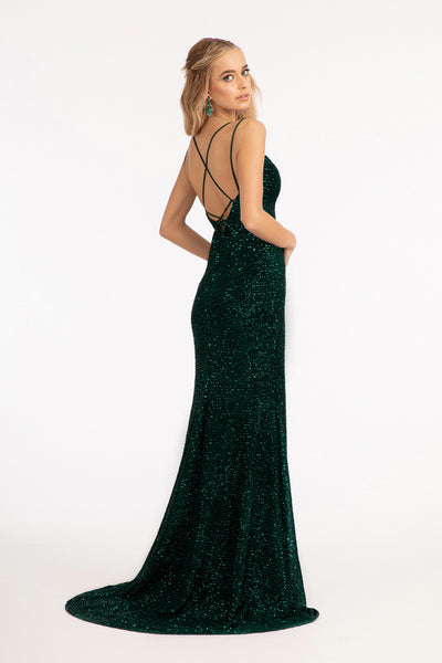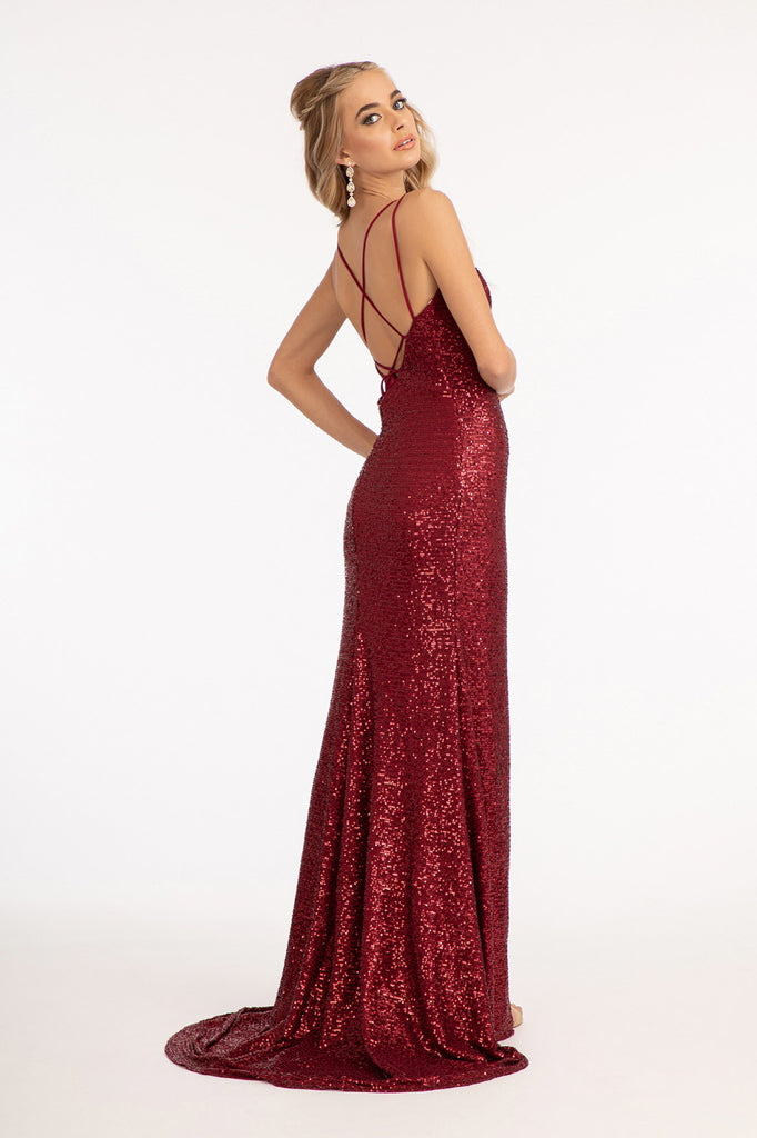 This slinky sequin embellished dress features open strapped back and side leg slit. A pair of two spaghetti straps adds a playful touch, and mermaid silhouette enhances your beautiful curves.