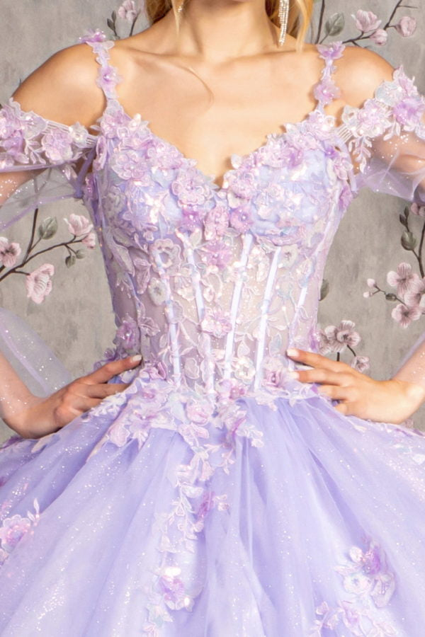 Jewel Glitter Sequin Sweetheart Mesh Ball Gown w/ Long Sleeves