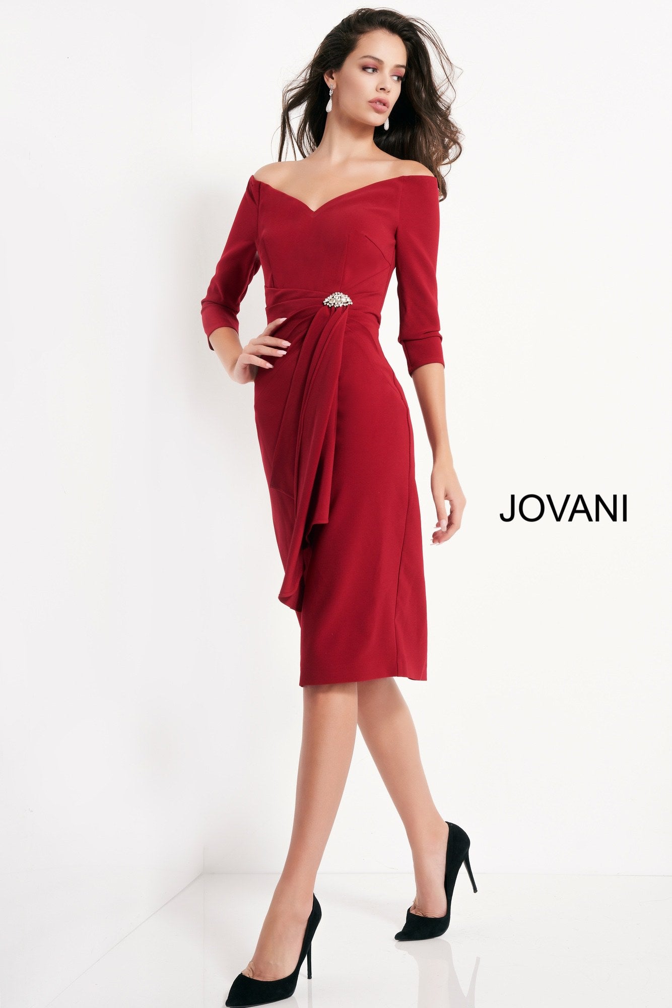 Jovani 02949 Burgundy Three Quarter Sleeve Evening Dress