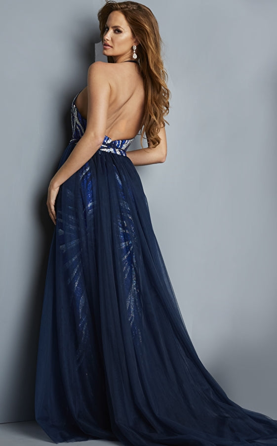 Royal Halter Neck Sequin Evening Jumpsuit