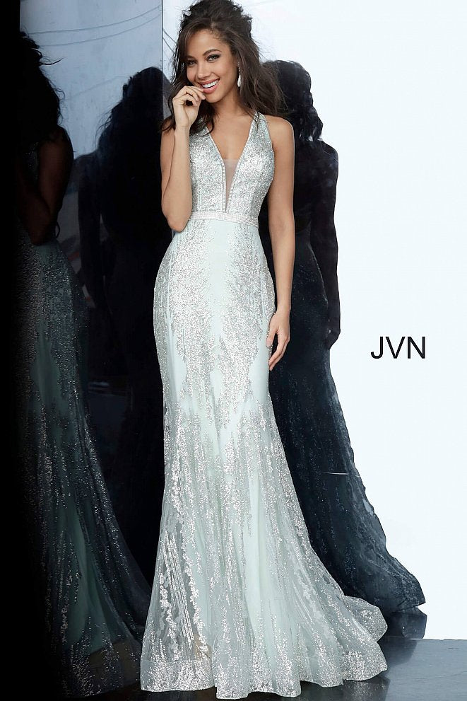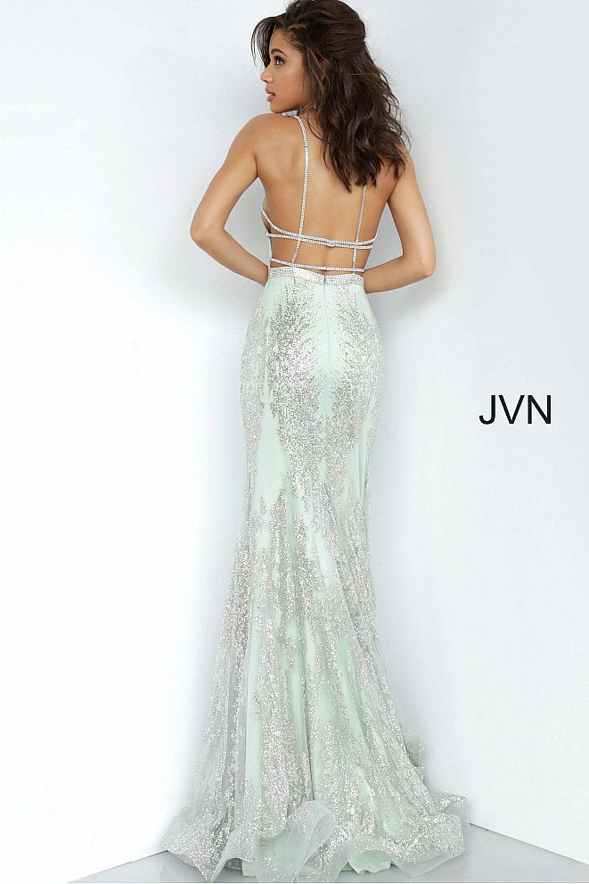 Details: Glitter embellished tulle dress, fully lined, floor length skirt with horsehair trim, embellished belt at waist, sleeveless bodice, embellished deep V neck with sheer mesh insert for support, open back with embellished straps.