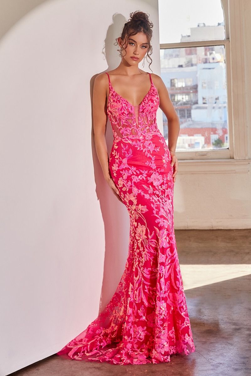 Turn heads in this fuchsia sequin dress, a mesmerizing blend of boldness and grace. The fitted silhouette ensures a flattering and confident look, hugging your curves with a touch of allure. The sheer bodice, adorned with a captivating floral sequin motif, adds an element of romance to the ensemble. Delicate thin straps frame your shoulders, creating a chic and modern silhouette. The lace-up corset keyhole back not only guarantees a perfect fit but also infuses a touch of glamour and sophistication. Whether you're hitting the dance floor or making a statement entrance, this hot pink sensation promises to capture attention and leave an unforgettable impression. Step into this sequined dream and let your vibrant personality shine in a burst of dazzling elegance and magnetic charm.