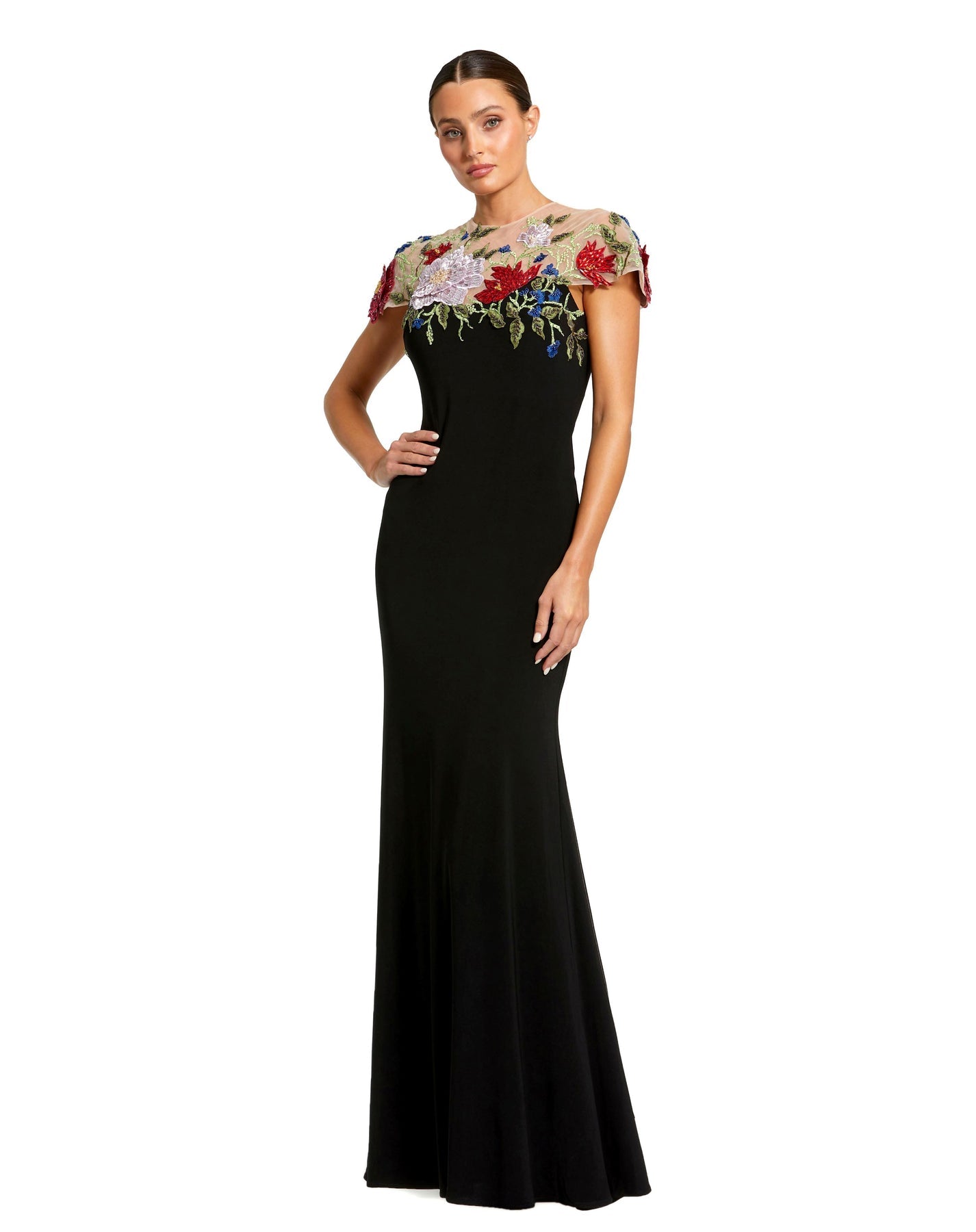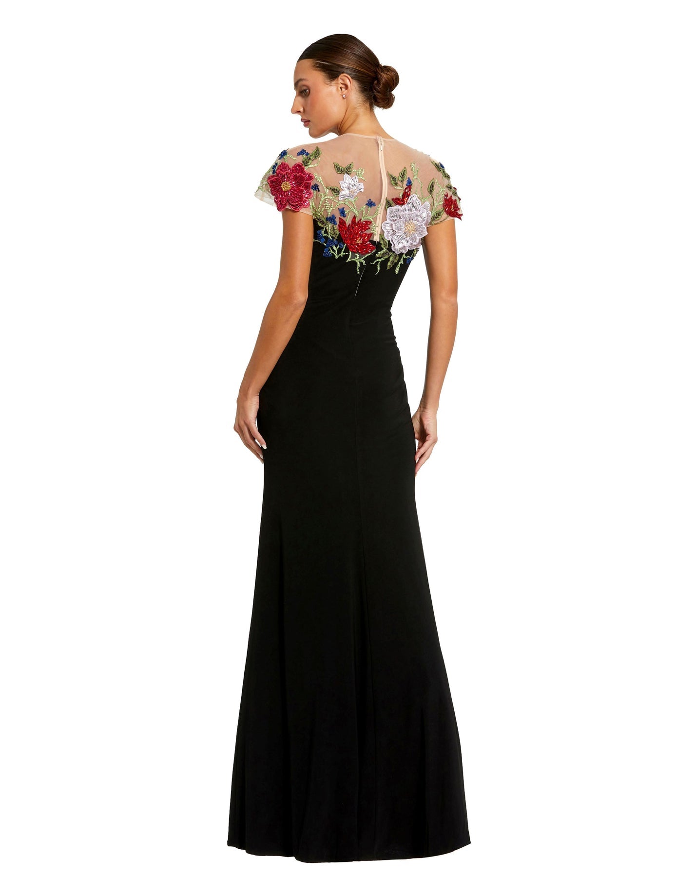 - Partially lined bodice; fully lined skirt; semi-sheer unlined sleeves