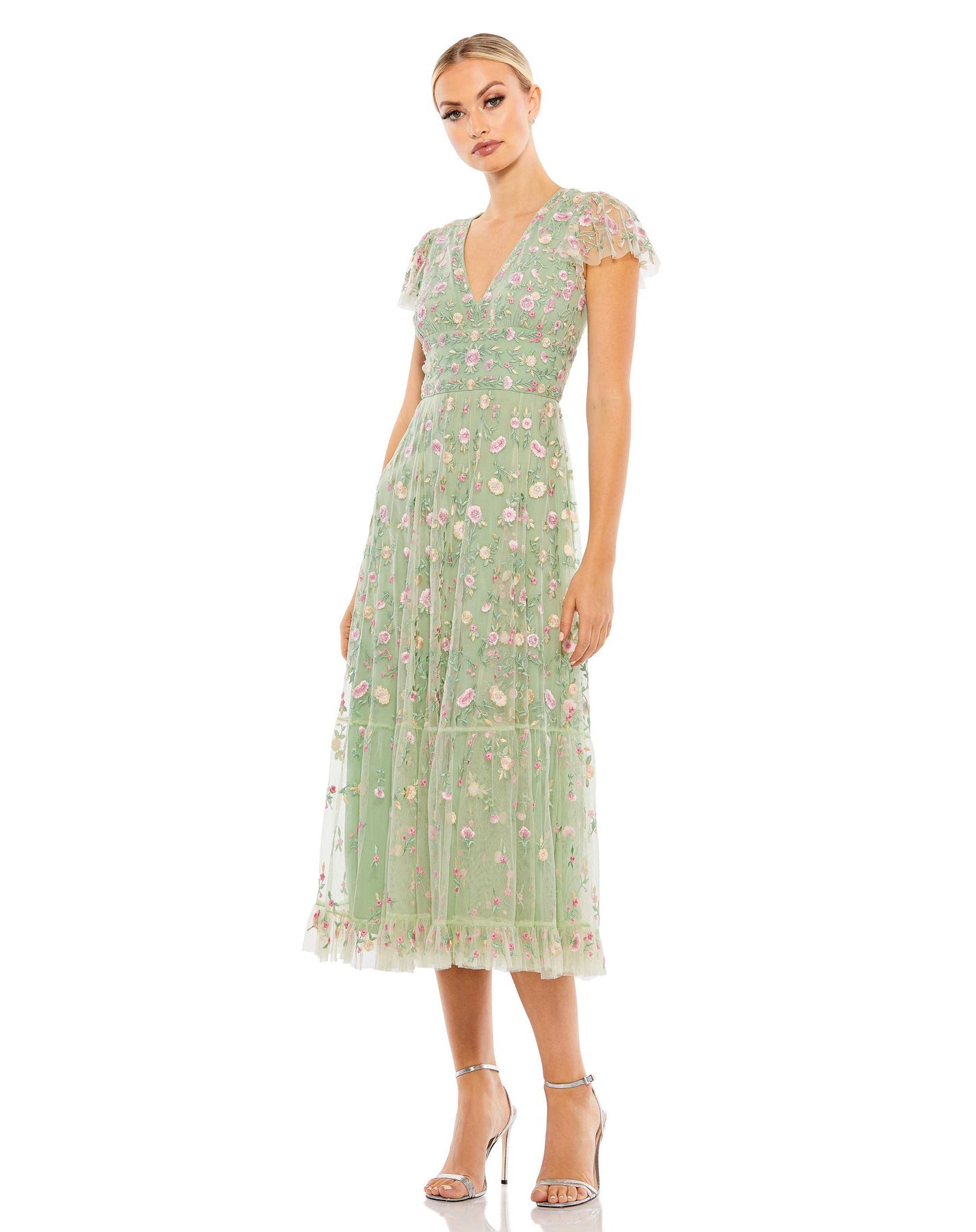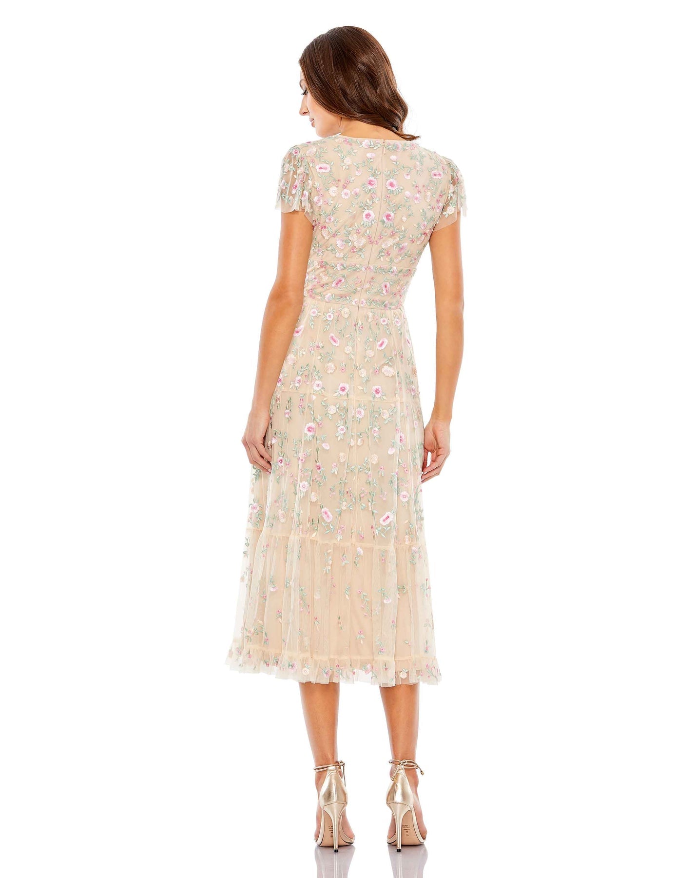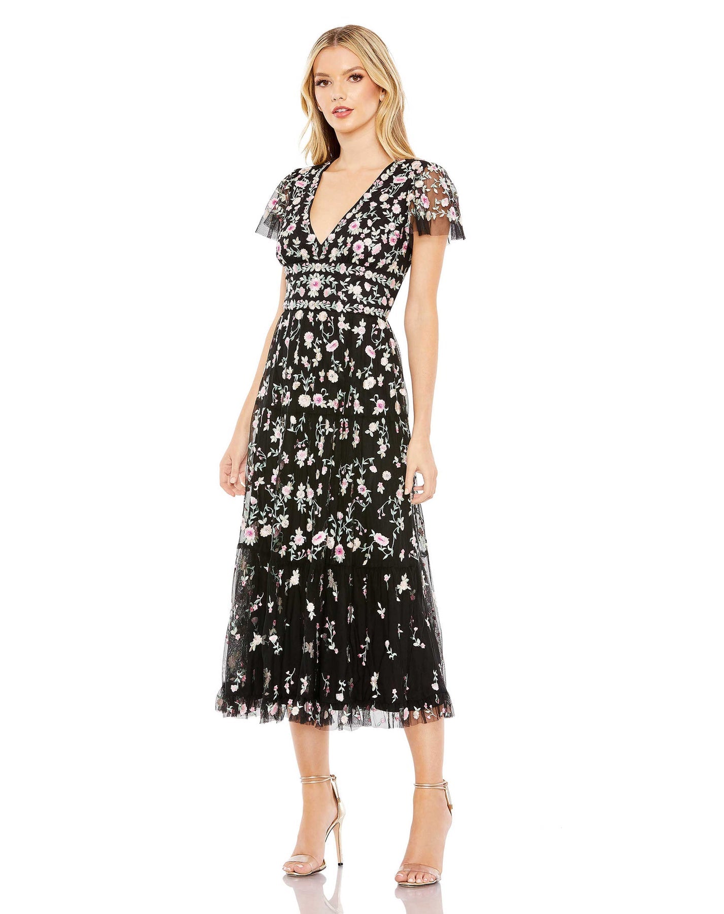 Presenting our Embroidered V Neck Cap Sleeve Midi Dress—a graceful blend of style and refinement. Delicately embroidered, this dress exudes understated elegance. The V-neckline and cap sleeves offer a flattering silhouette with a touch of femininity.