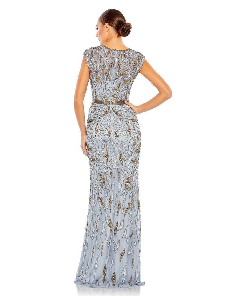 Partially lined bodice; fully lined skirt; semi-sheer unlined sleeves
