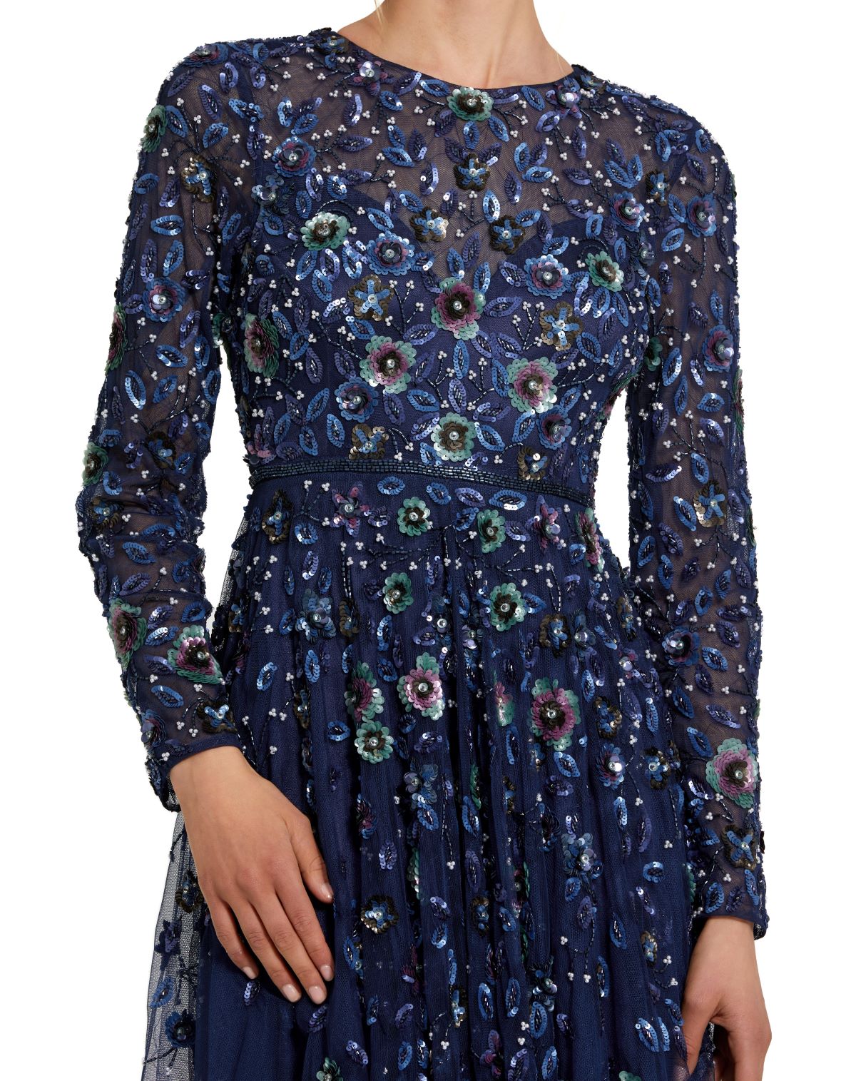 - Allover hand-sequined floral appliqué complimented by pearl accents