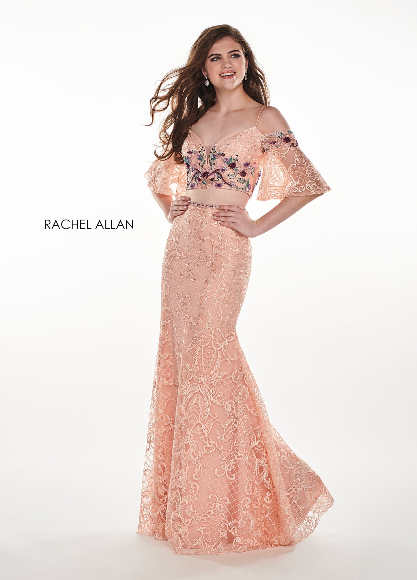 Boho-inspired dresses are our favorite type to wear for prom. This is a two-piece that has an off-the-shoulder top with lace and multi-colored embroidery. While the skirt itself is made of all lace, this is a pretty prom style that you will want to wear for your big event.