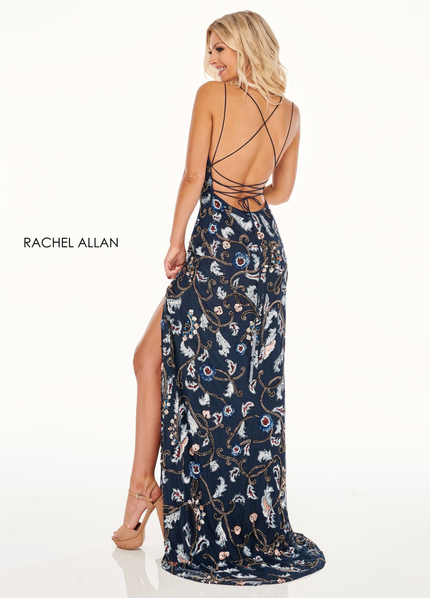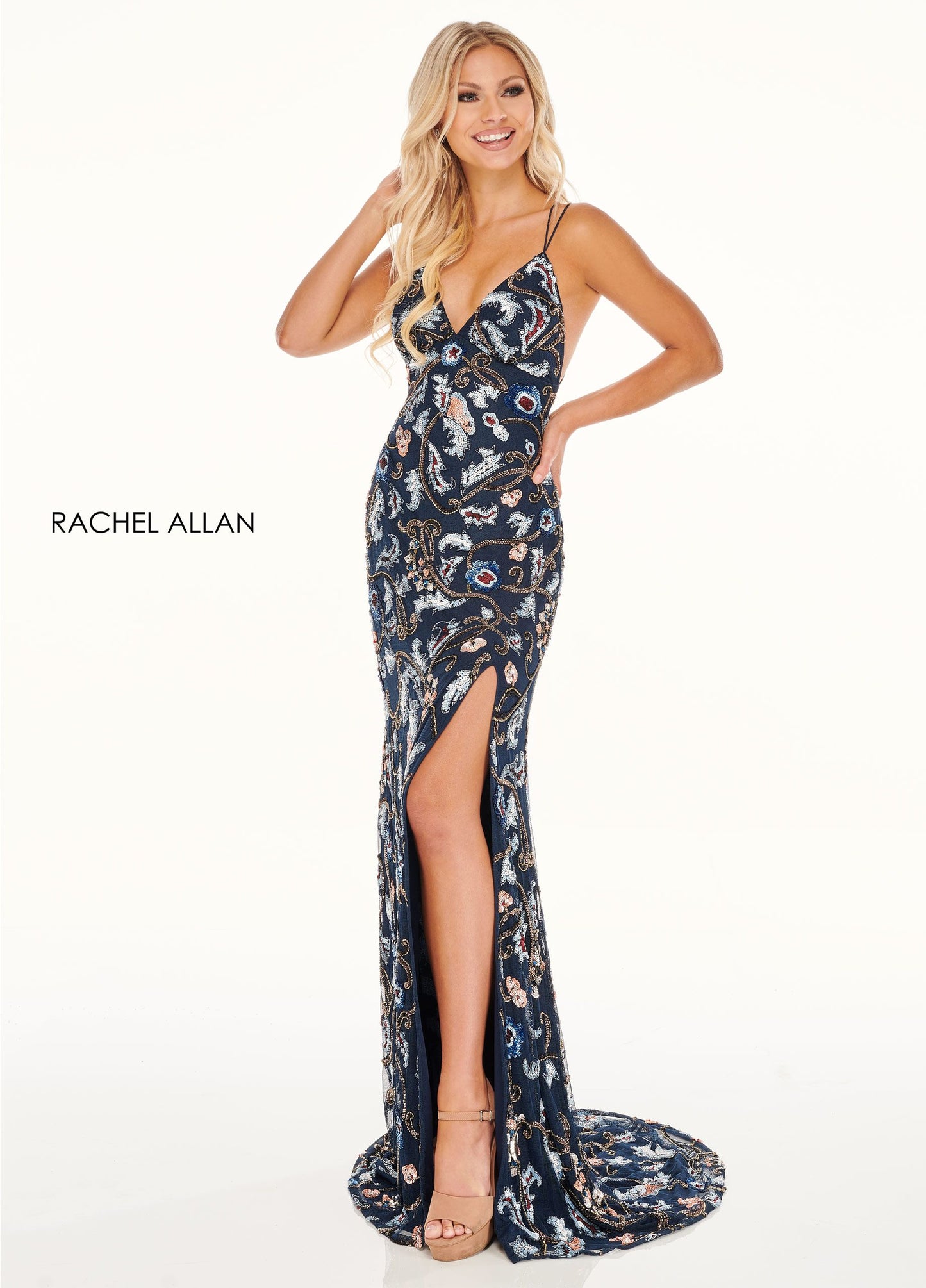 V-NECK FITTED LONG PROM DRESSES IN NAVY COLOR