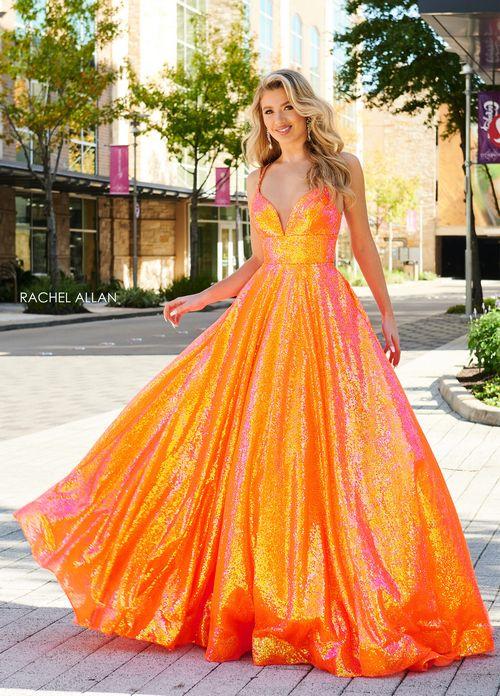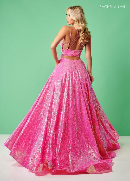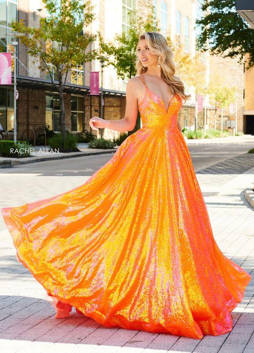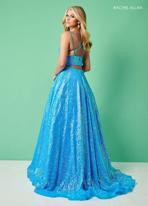 Dazzle into your Prom wearing this fabulous sequin A-line gown shimmering to perfection. Designed with an amazing beaded strappy back and pockets, this iridescent dress will be a true fave.