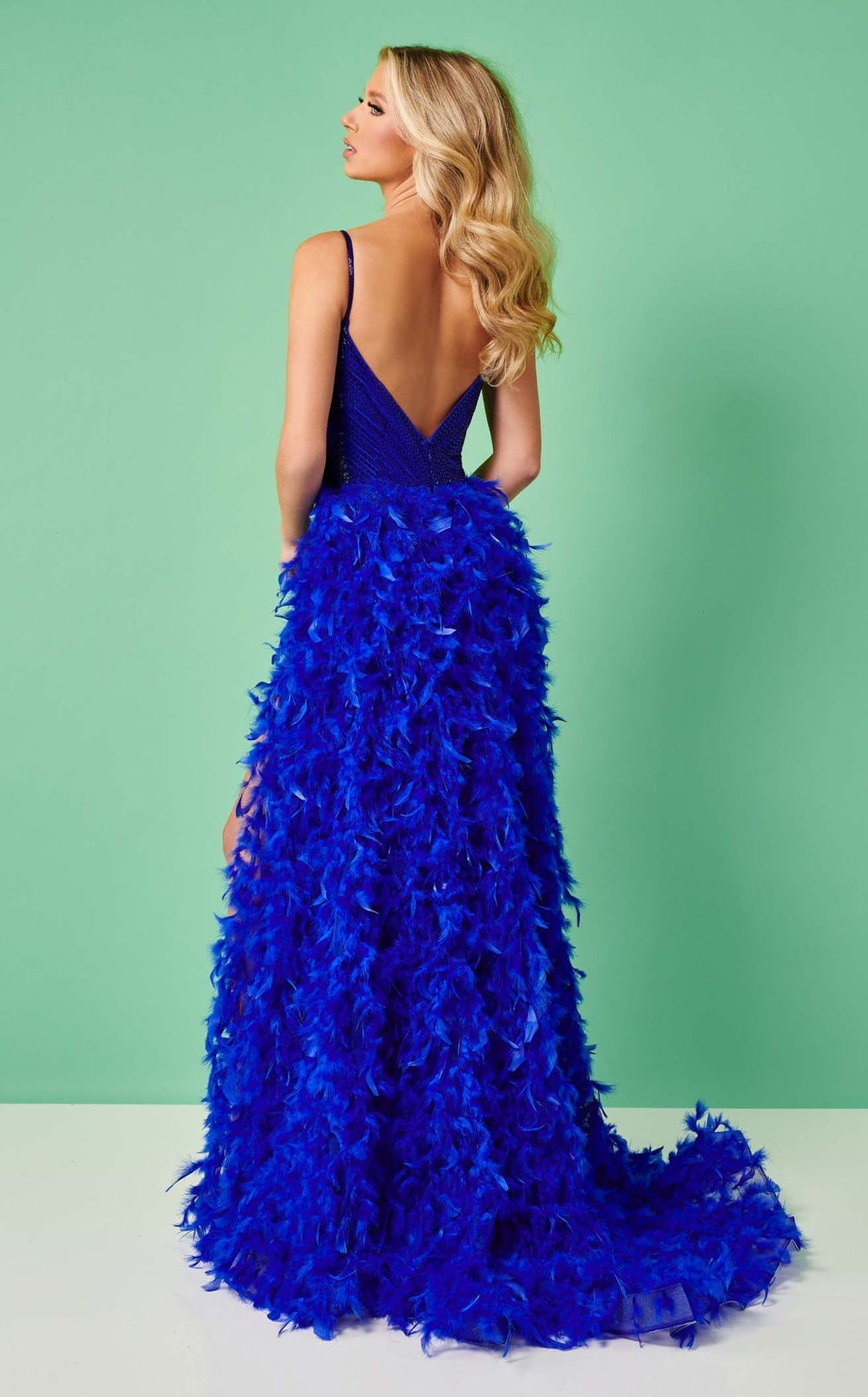 Charming Floor-length Body-fitting Feather Decorated Sleeveless Dress by Rachel Allan